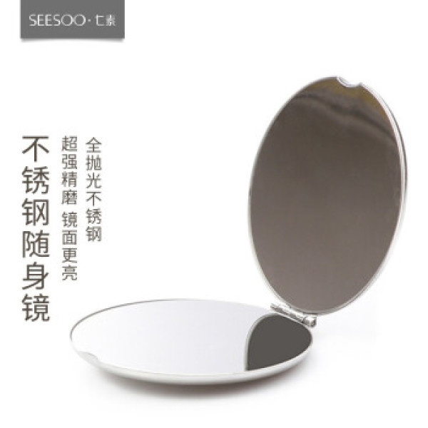 七素 Seesoo德国全不锈钢化妆镜子折叠摔不碎便携随身镜摔不碎高清小镜子化妆梳妆镜迷你随手补妆镜网红镜圆形