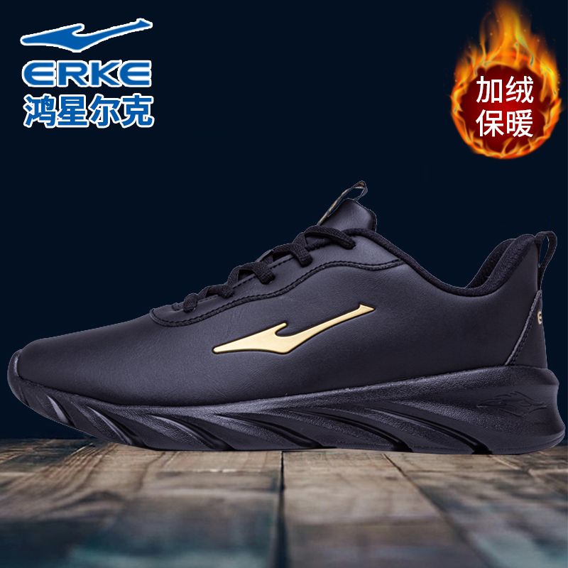 鸿星尔克男鞋秋冬新款皮面保暖防水运动鞋正品加绒加厚跑步鞋子男