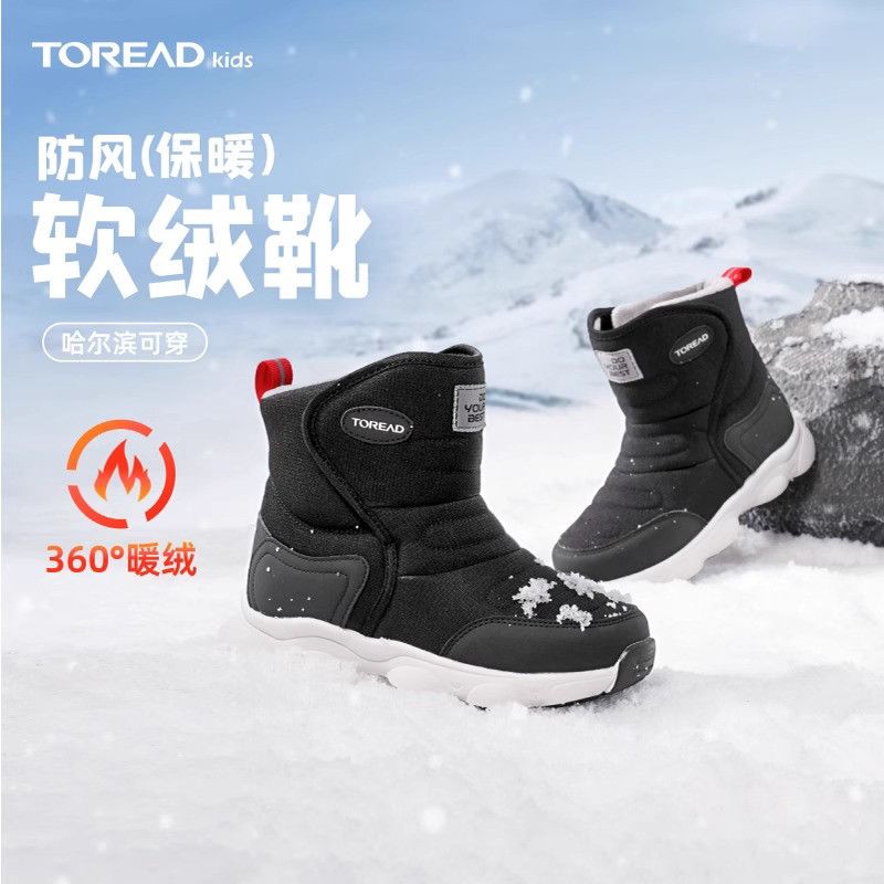 探路者儿童冬靴秋冬户外雪地靴防滑中大童休闲运动舒适加绒保暖靴