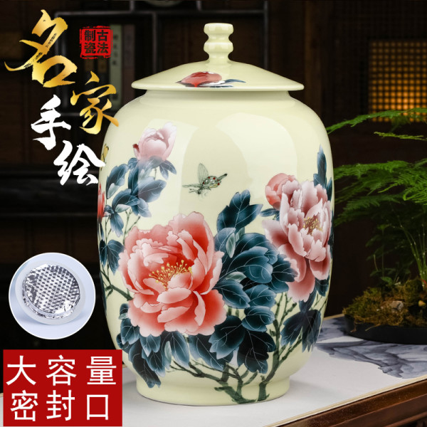 天泥 手绘景德镇陶瓷普洱散茶5斤装茶叶罐密封罐防潮白茶储存罐3斤大号