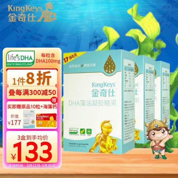 金奇仕kingkeys帝斯曼授权婴幼儿藻油DHA 270粒(90粒×3盒)孕婴童青少年佳品