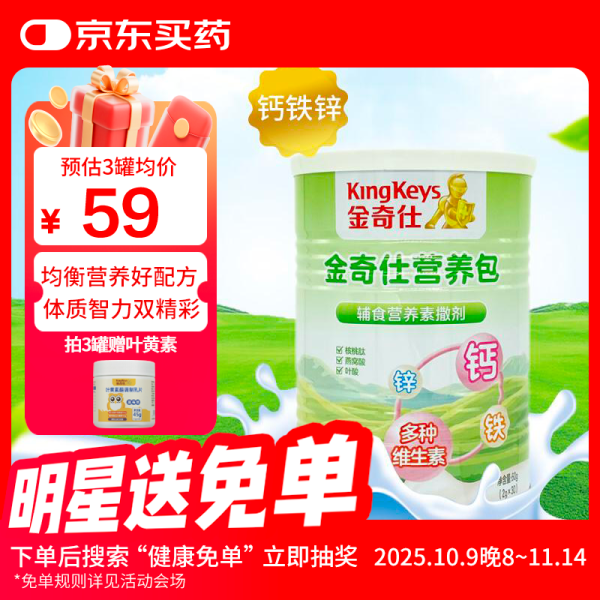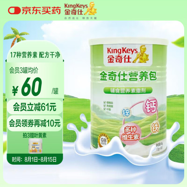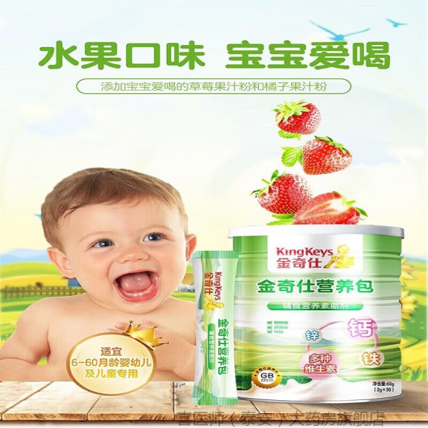 金奇仕(kingkeys)婴幼儿营养包钙铁锌多种维生素矿物质6-60月龄婴幼儿儿童营养包30袋60g 1罐