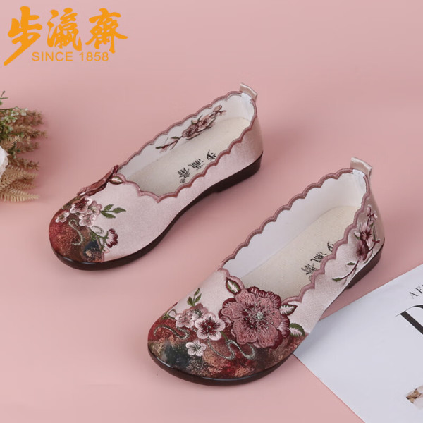 步瀛斋 老北京布鞋女 民族风汉服鞋 手工纳底千层底 绣花鞋文艺休闲单鞋 粉色 37
