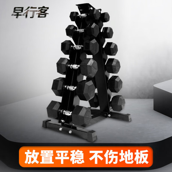 早行客六角哑铃套装 家用包胶哑铃架纯钢铸铁哑铃 105kg+6对哑铃架 六角哑铃套装 105kg+6对哑铃架