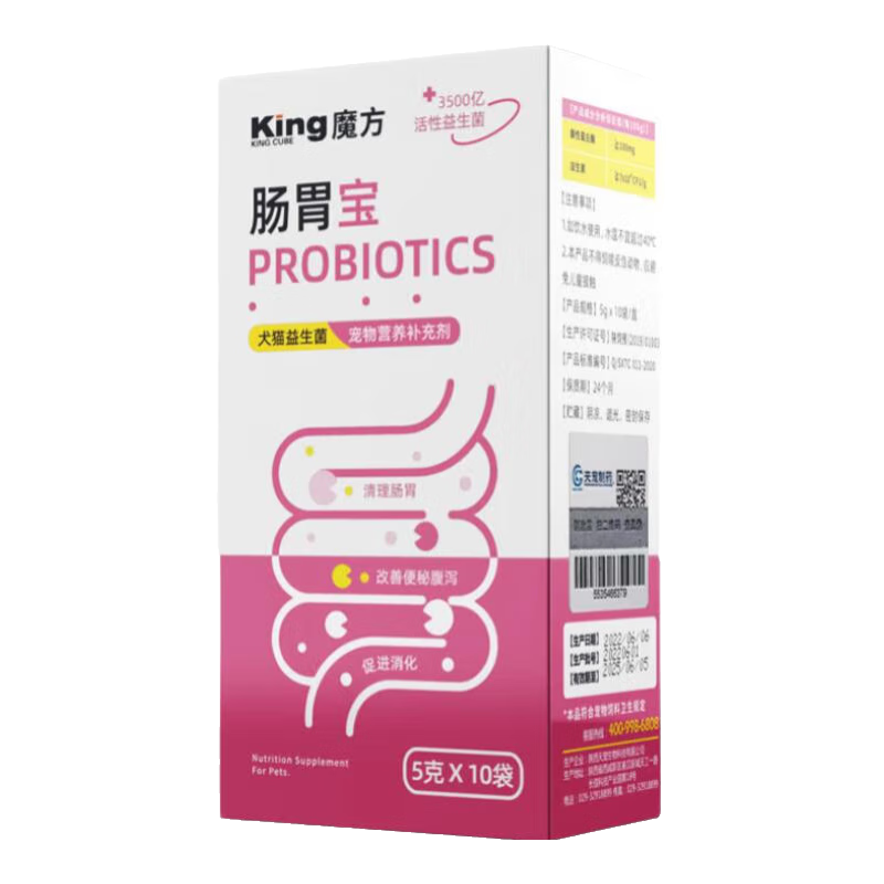 KING魔方 宠物益生菌5g*10包 猫咪狗狗活性益生菌调理肠胃宝便秘呕吐腹泻拉稀幼猫幼犬