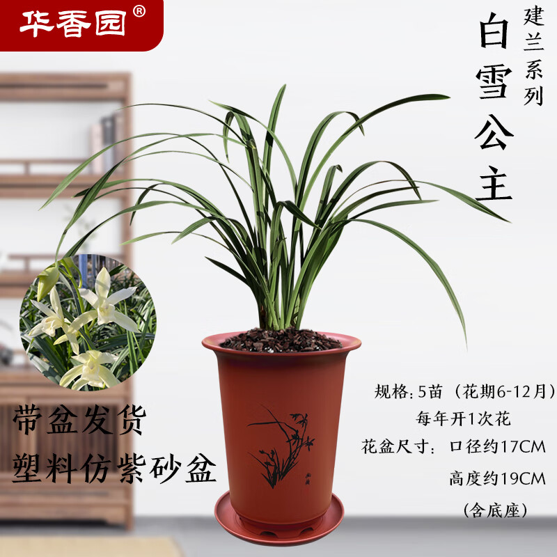 华香园兰花【黄金美人】四季建兰黄花浓幽香办公室内盆栽鲜花耐阴绿植 白雪公主5苗带盆(红色)不带花苞