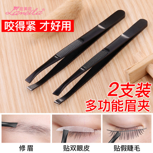 拉美拉(两支装) 多功能眉毛夹【眉夹子不锈钢镊子拔毛拔胡子修眉刀眉夹 黑色【两支装 平口+斜口】