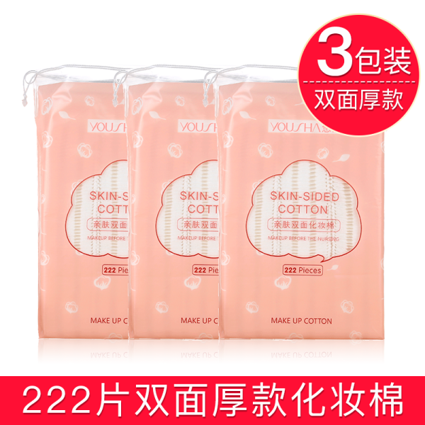 拉美拉卸妆棉加厚化妆棉湿敷卸妆棉片卸甲双面双效纯棉一次性洁面巾 双面厚款222片*【3包装】