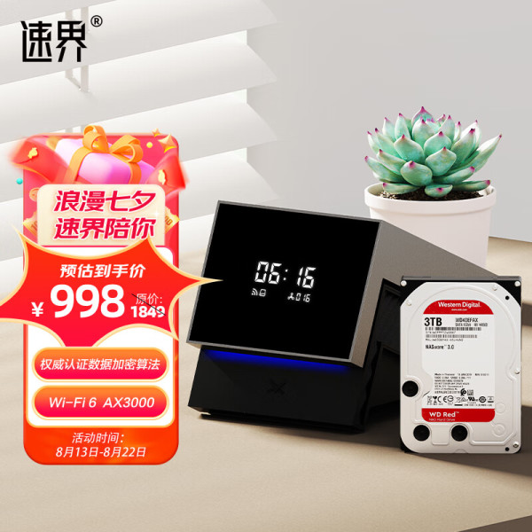 SGAI 速界 二次加密NAS网络存储文件备份多设备共享私有云AX3000WiFi6博通四核路由器 Space 1配3T西数Red盘