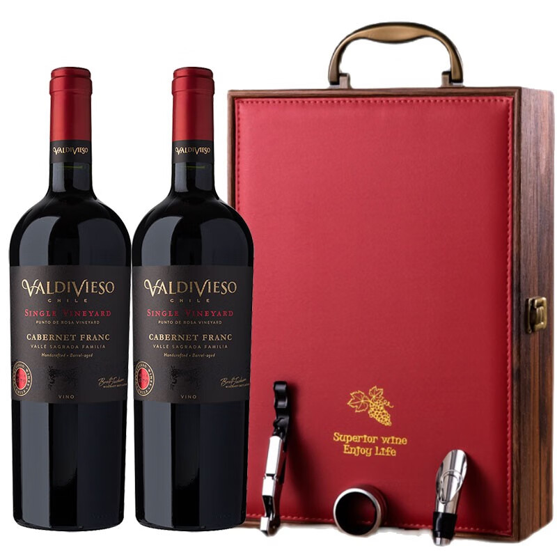 瓦帝维索(VALDIVIESO)[VIVINO4.0 RP90分]智利酒庄库里科谷单一园老藤品丽珠干红葡萄酒 双支装750mL*2