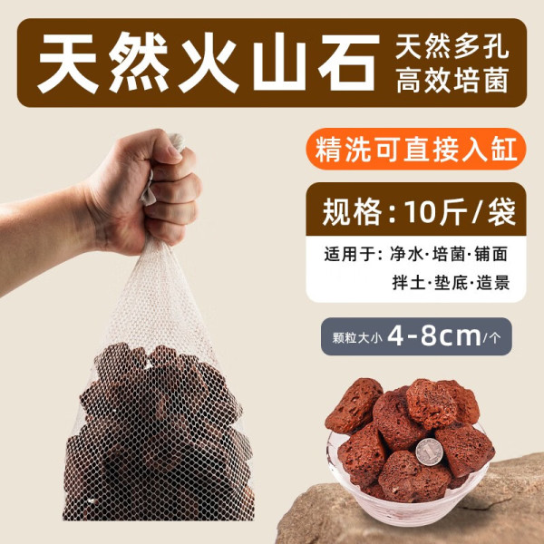 西洲曲火山石鱼缸滤材天然水族过滤材料大块罗汉铺底增色火山岩底砂 高压精洗【4-8CM红火山石颗粒】10斤装