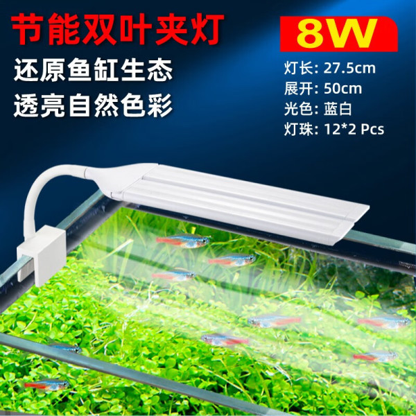 西洲曲鱼缸灯水草照明led灯防水全光谱小型夹灯草缸灯水族箱观赏照明灯 8W 蓝白款 双叶夹灯 适合25-55CM鱼缸