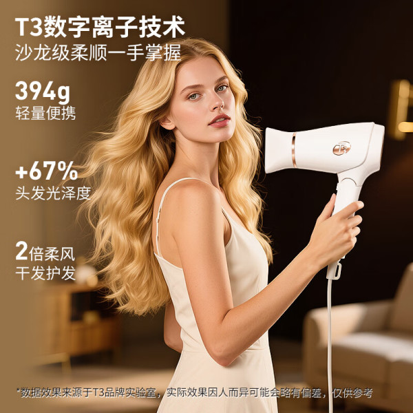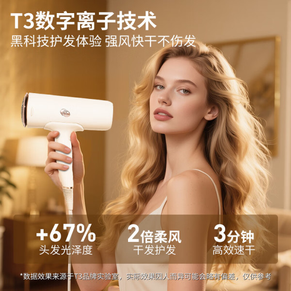T3 美国畅销 Fit 电吹风家用高速吹风机 大功率速干护发 便携负离子吹风机 生日礼物