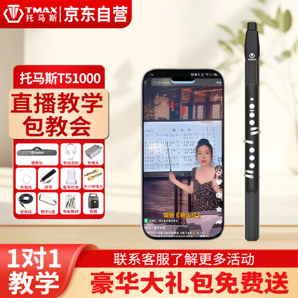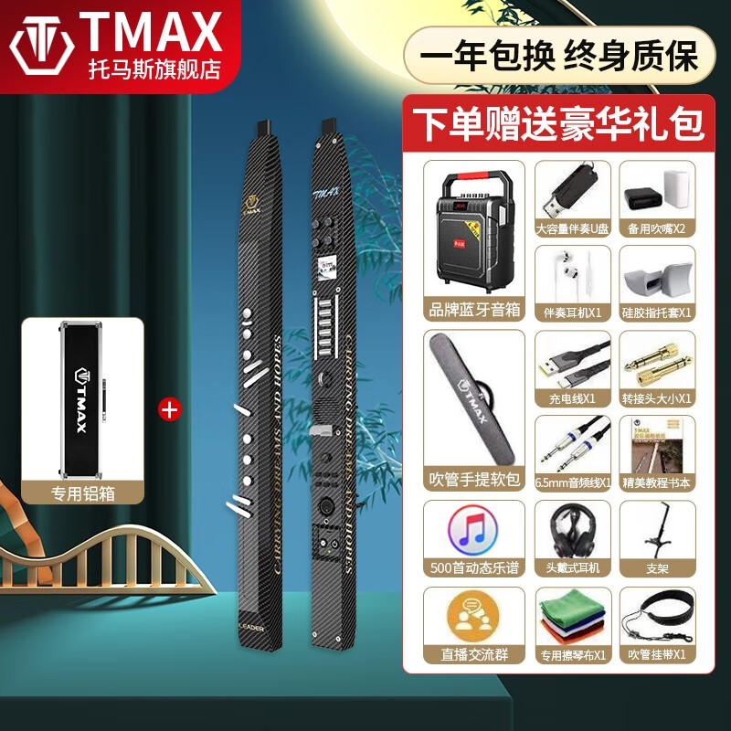 天铭 T-MAX TMAXT5100 新款托马斯电吹管 高音质智能笛子 黑色标配+音箱(5.25寸蓝牙音箱 备用吹嘴 配套书本教材 吹管挂绳 充电线 6.55mm音频线 加厚时尚手提软包)