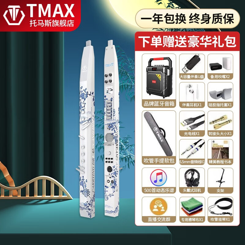 TMAX托马斯电吹管乐器电子管T6100中老年电萨克斯葫芦丝笛子吹管乐器 青花瓷标配 礼包