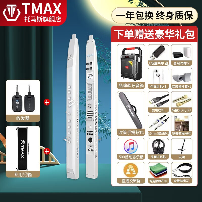 TMAX托马斯电吹管乐器电子管T6100中老年电萨克斯葫芦丝笛子吹管乐器 白色标配 收发器 礼包 铝箱