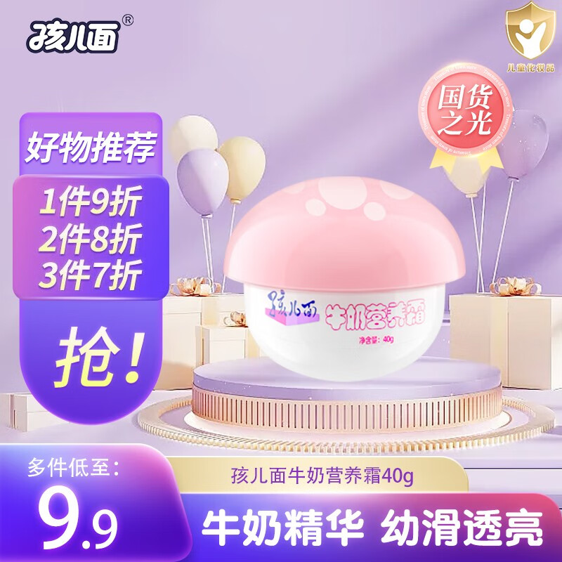 孩儿面牛奶营养霜儿童面霜宝宝蘑菇霜滋润肌肤羊毛脂牛奶精华嫩肤护肤霜 牛奶霜40g*1瓶 随身装牛奶霜10g