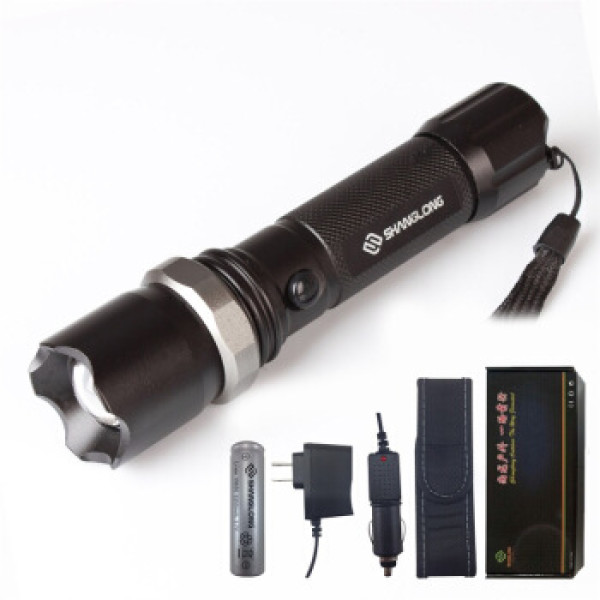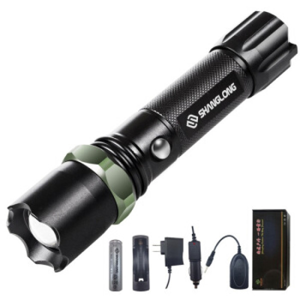 尚龙户外直充式凸镜变焦强光手电筒套装CREE Q5三档调光带尼龙套锂电池充电器 SL-E29