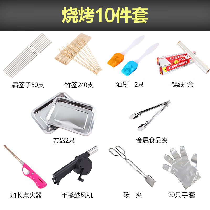 尚龙 户外烧烤工具套装家用烧烤配件套餐用品签子盘子锡纸食品夹木炭 烧烤工具10件套