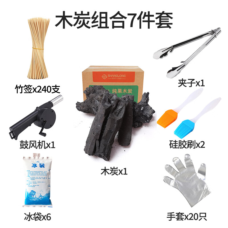 尚龙(SHANGLONG)烧烤木炭机制炭实木炭原型果木炭烧烤碳户外条形成型易燃机制碳 木炭组合7件套