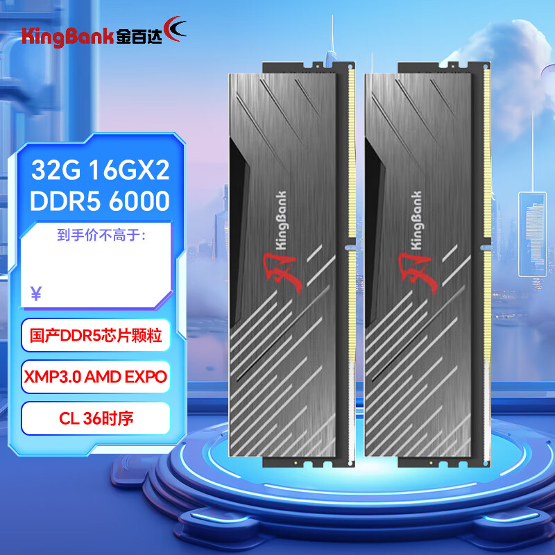金百达(KINGBANK)DDR5内存 银爵/黑刃/星刃 6000/6400/6800 台式机内存 游戏电竞马甲条 Deepseek硬件 黑刃【16G*2】6000套条【国产颗粒C36】