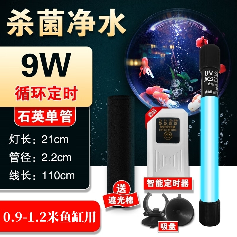 KARELL鱼缸杀菌灯uv潜水灭菌灯专用除藻过滤净水消毒灯紫外线带定时小型 智能循环定时款/9W杀菌灯[送遮光套]