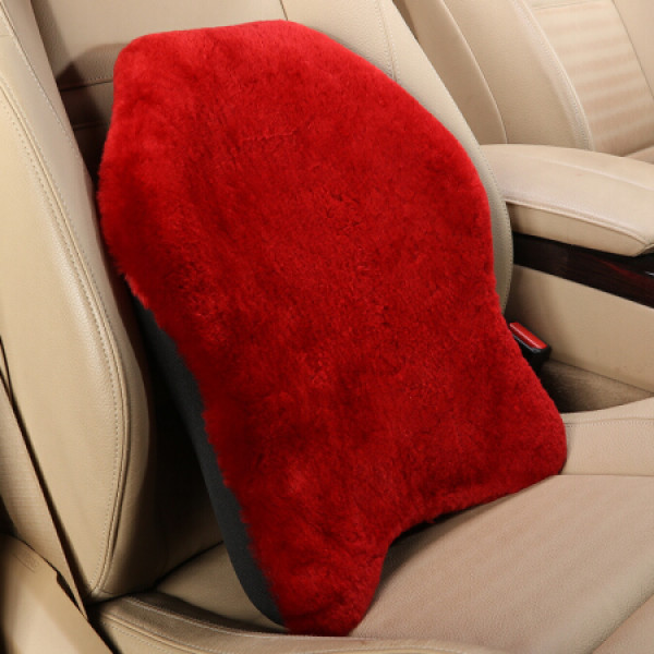 九百-WY-1824B 纯羊毛汽车腰靠座椅护腰腰垫腰靠记忆棉冬季内饰用品 羊毛腰靠 红色