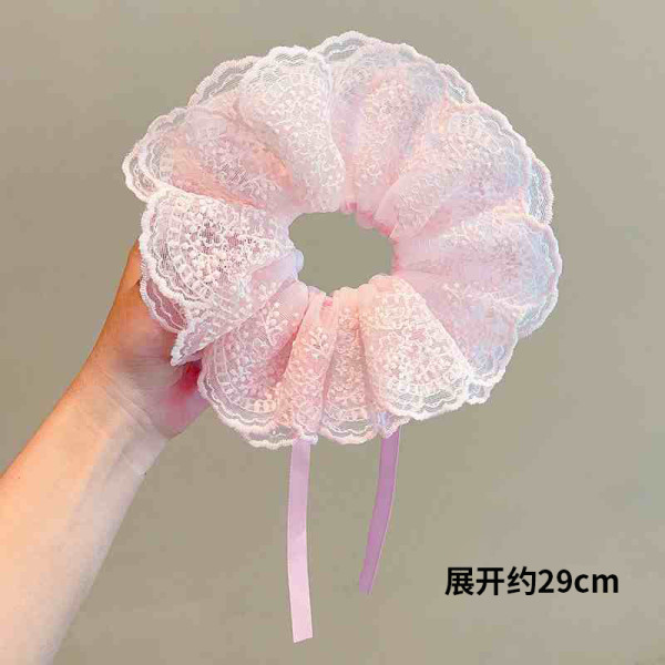 differhand 甜美可爱大肠发圈女儿童丸子头飘带发绳四层蕾丝花边扎头发绳头饰