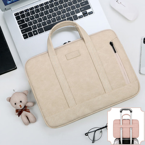 圣兰戈(SOCKO)16.1英寸手提电脑包时尚轻薄男女手提通用包旅行商务适用MacPro 米色气垫+小熊挂件 14英寸