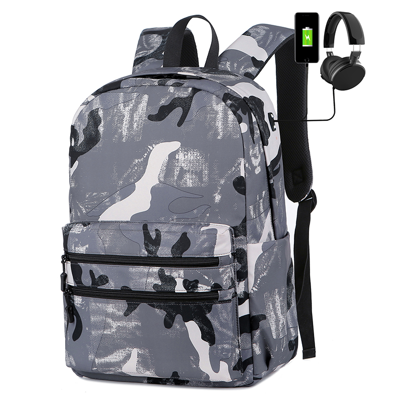 圣兰戈双肩包男16英寸电脑包女背包书包初中高中大学生大容量笔记本包 升级款迷彩灰带拉杆袋 14-15.6英寸