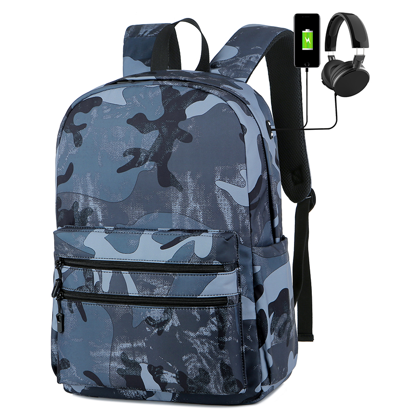 圣兰戈双肩包男16英寸电脑包女背包书包初中高中大学生大容量笔记本包 升级款迷彩蓝带拉杆袋 14-15.6英寸