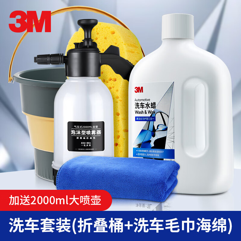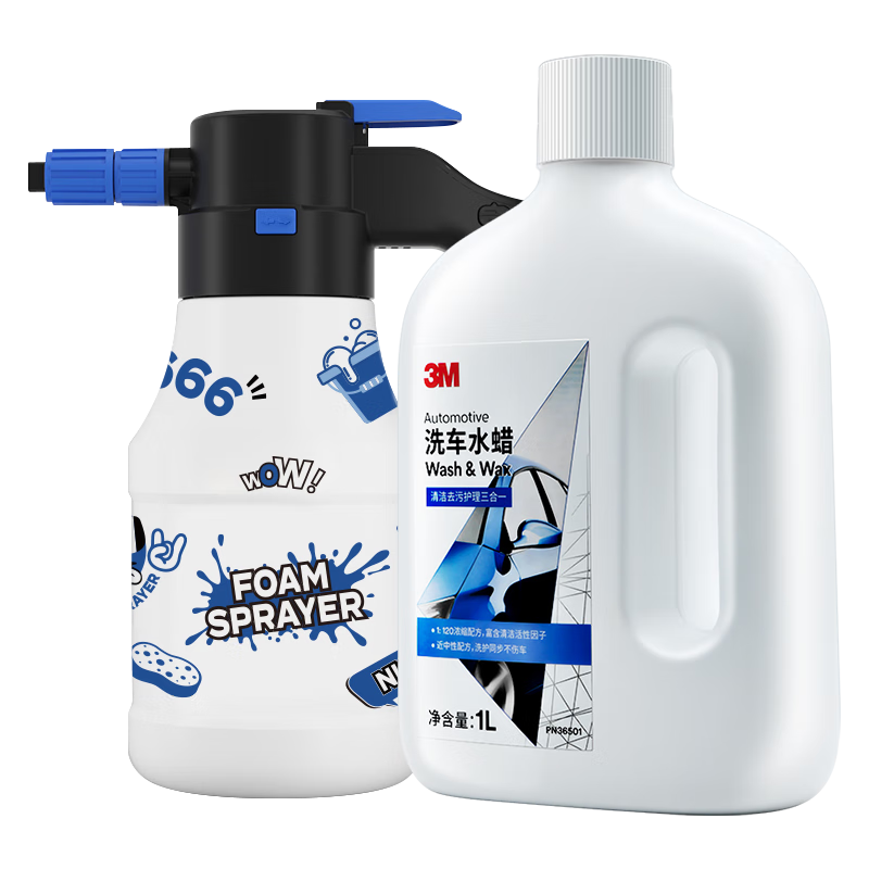 3M电动喷壶洗车液套装 洗车水蜡 泡沫清洗剂高泡壶 专用强力去污
