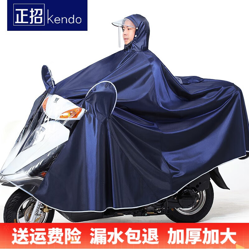 正招雨衣电动摩托车雨衣双人男女款加大加厚电瓶车长款全身防暴雨雨披 藏青 4XL单人款