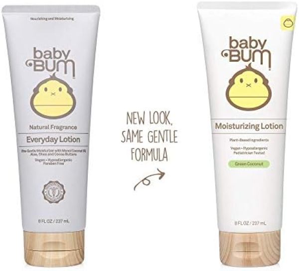 Baby Bum Brush Baby Bum 日常乳液保湿婴儿润肤露,适用于敏感肌肤,含有乳木果和可可脂,香味,无麸质和纯素,237ml