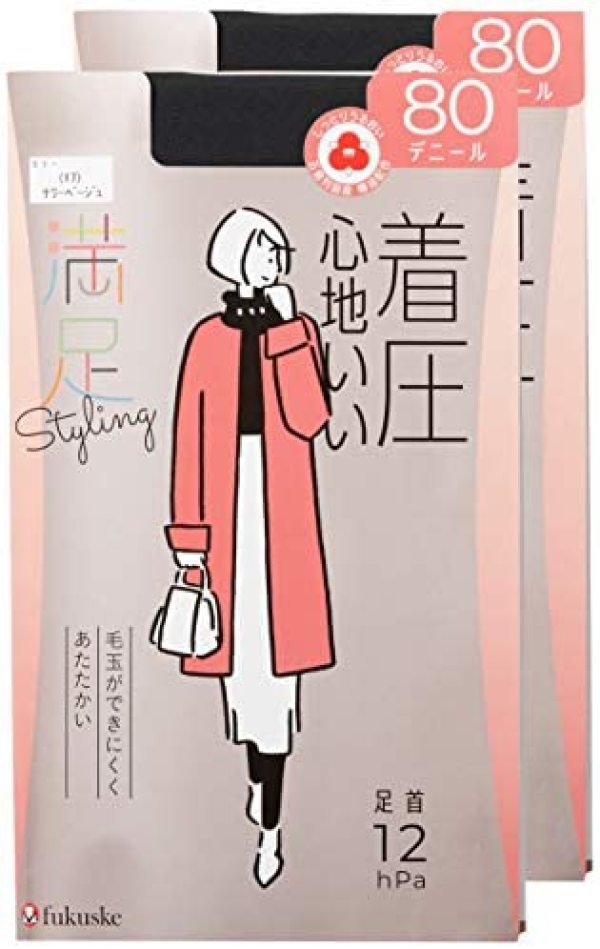 Fukuske 满足 压力 80旦尼尔 连裤袜 2双装 女士