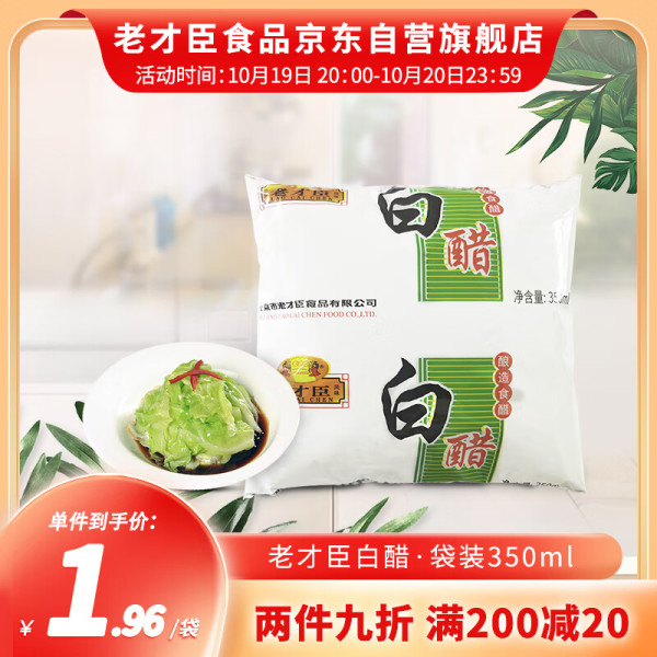 老才臣 白醋 食用果醋洗脸泡脚去除水垢凉拌蘸料白醋 袋装350ml