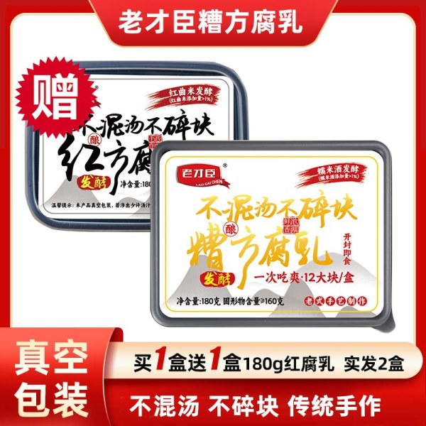 老才臣 糟方腐乳180g*2盒白腐乳霉豆腐乳下饭菜配粥咸菜真空包装