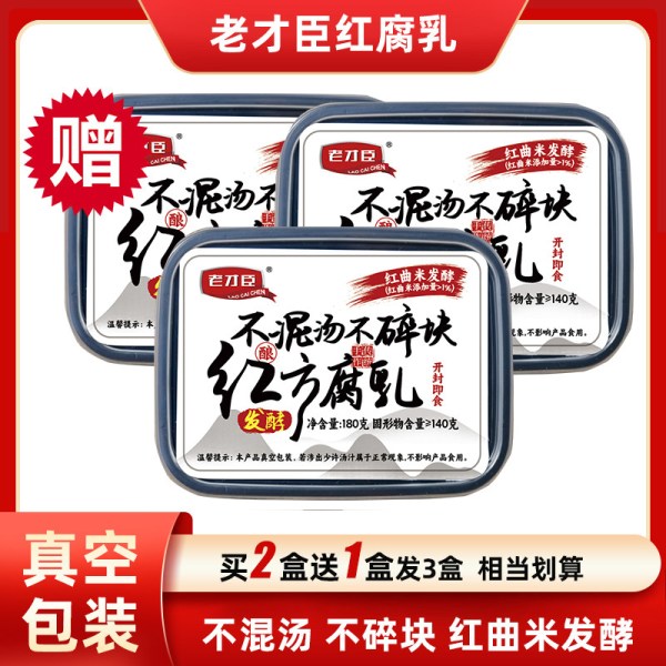 老才臣 红方腐乳180g*3盒原味老式酱豆腐火锅蘸料调味腐乳豆腐乳