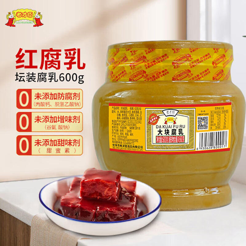 老才臣大瓷坛装 原味大块红腐乳600g 拌面拌饭火锅蘸料 调料下饭菜