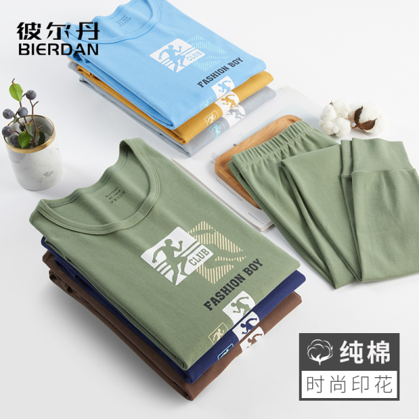 BIERDAN 彼尔丹 青少年秋衣秋裤套装男孩学生纯棉薄款保暖内衣高中生初中生棉毛衫