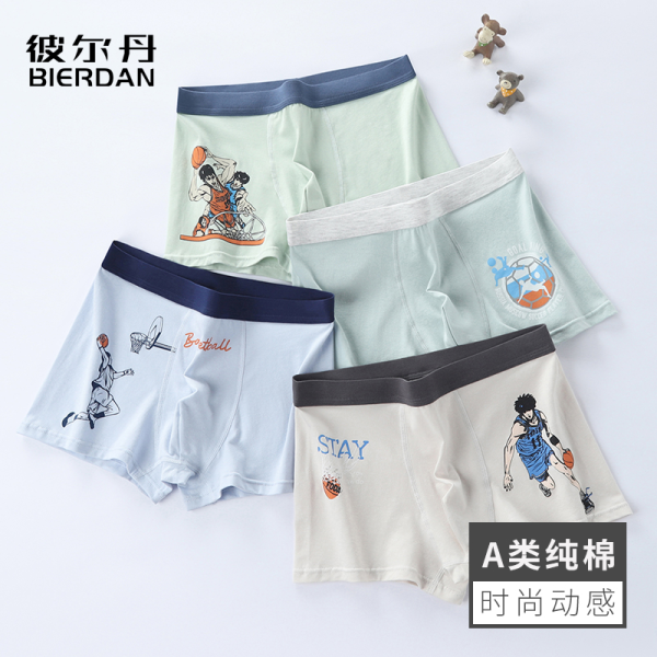 BIERDAN 彼尔丹 男大童内裤10周岁以上纯棉青少年发育期青春期初中生四角裤平角裤