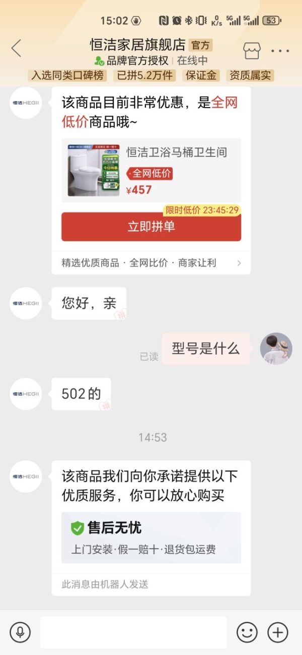 恒洁雅 恒洁卫浴马桶卫生间家用虹吸式静音省水抽水M52/502