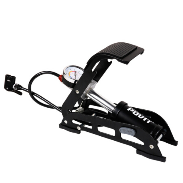 普为特POVIT 脚踏高压打气筒便携多功能自行车电动车摩托车汽车篮球游泳圈脚踩充气泵 带气压表 黑色P-441