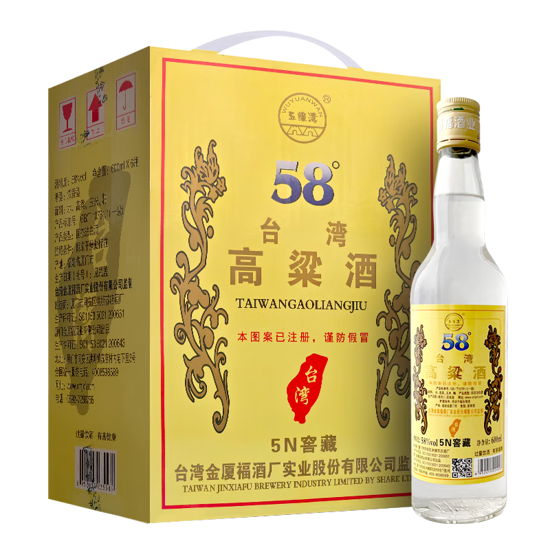 五缘湾 台湾高粱酒 五N窖藏 浓香型白酒 58度 600ml*6瓶 手提装厦门高粱