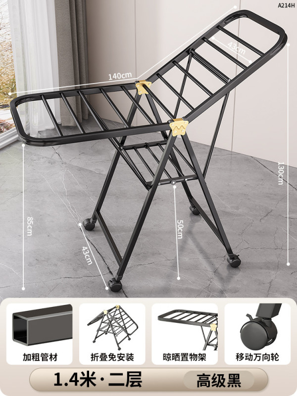 伊藤良品 A214H-1.4米高级黑双层晾晒翼型晒衣架 碳钢