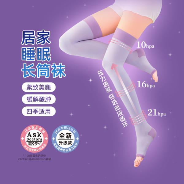 丝翎(SLIMWALK)日本塑形睡眠袜女压力袜连裤袜美腿袜长筒袜春秋强压显瘦袜 睡眠长筒袜加长美腿4段压力 M-L