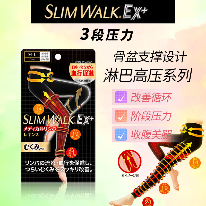 丝翎(SLIMWALK)日本进口塑形睡眠袜女压力袜连裤袜美腿袜长筒袜春秋强压显瘦袜 2025新款淋巴高压压力裤 1双 M M-L