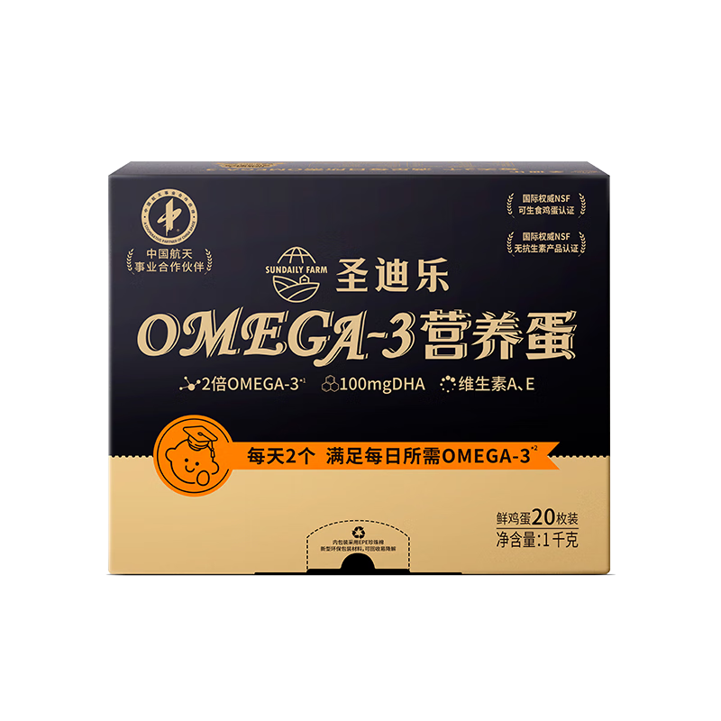 圣迪乐村 OMEGA-3鲜鸡蛋20枚礼盒装净重2斤 无抗生素儿童宝宝鸡蛋