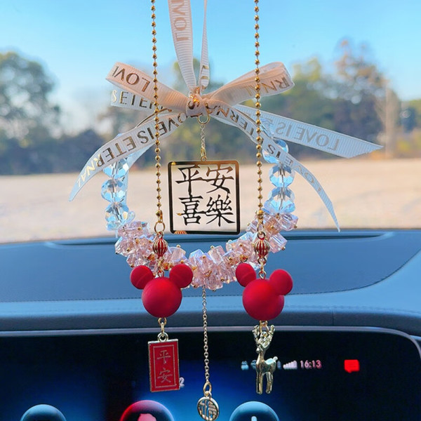 艾可斯 女神款 汽车挂件 平安喜乐粉水晶+一鹿平安