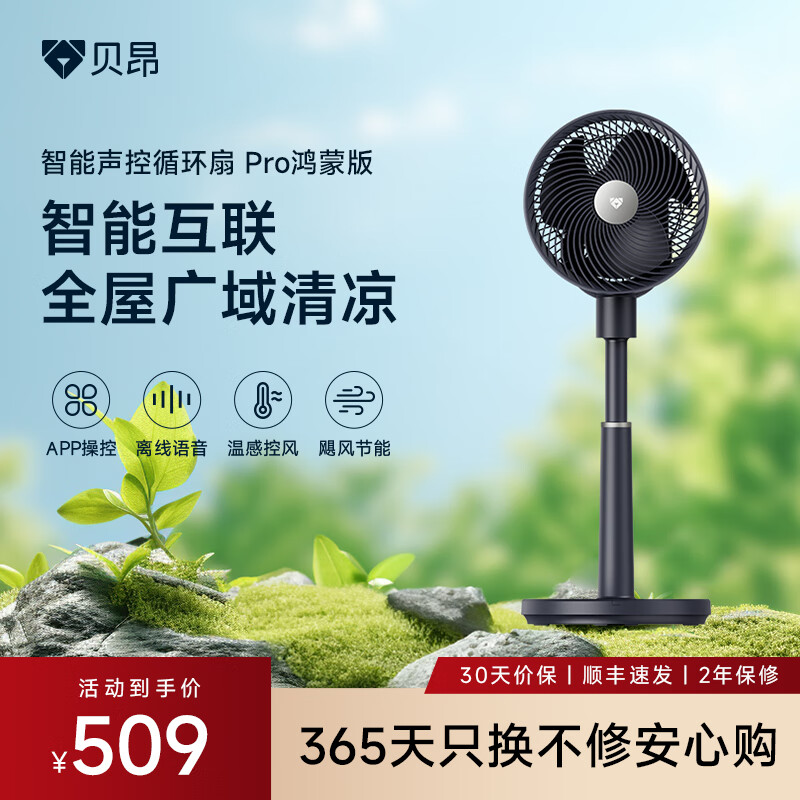 贝昂空气循环扇静音卧室客厅电风扇智能语音节能大风力直流变频家用风扇台式桌面电风扇3D摇头 支持鸿蒙智联Pro黑【23米长风距】